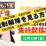 AnimeFesta | 〇(12/12~配信あり) | 未発表 | プレミアムプランで無修正版の配信が公式にアナウンスされています。 |